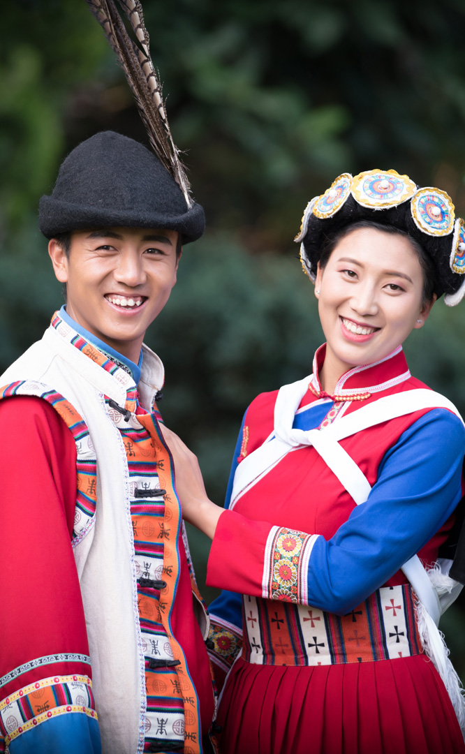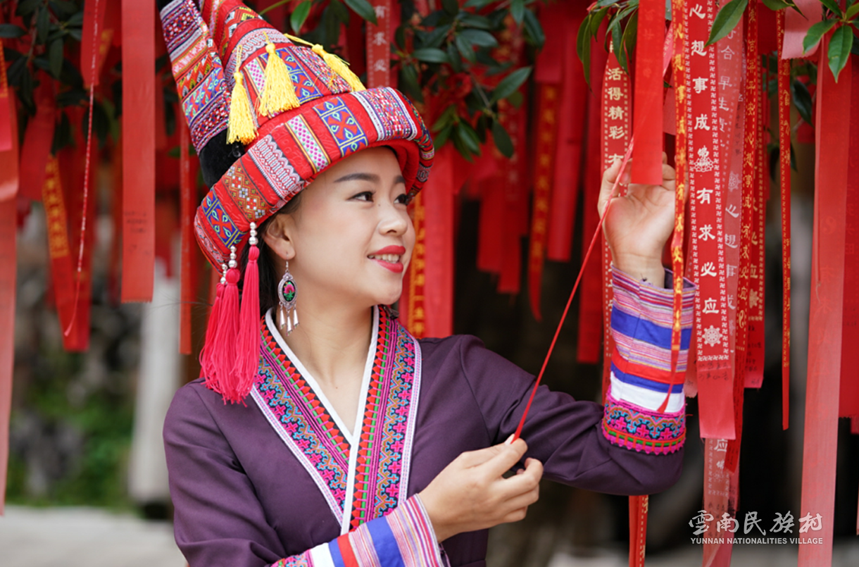 彝族在云南境內(nèi)約471萬人,是省內(nèi)人口最多、分布最廣的少數(shù)民族,主要聚居在金沙江、元江流域和哀牢山、無量山腹地。彝族是一個(gè)能歌善舞的民族,民間打歌、跳樂之風(fēng)盛行,大三弦、跌腳舞久負(fù)盛名?;鸢压?jié)是彝族最具特色的民族節(jié)日。彝族村占地50余畝,三虎浮雕墻與虎頭內(nèi)祖師形象表現(xiàn)了彝族虎鷹文化。太陽歷廣場(chǎng)圖騰柱上有太陽、虎、火和八卦圖形象,周圍環(huán)繞著10個(gè)朝向不同的月球造型,外圓周有12生肖石雕。依山而建的“...